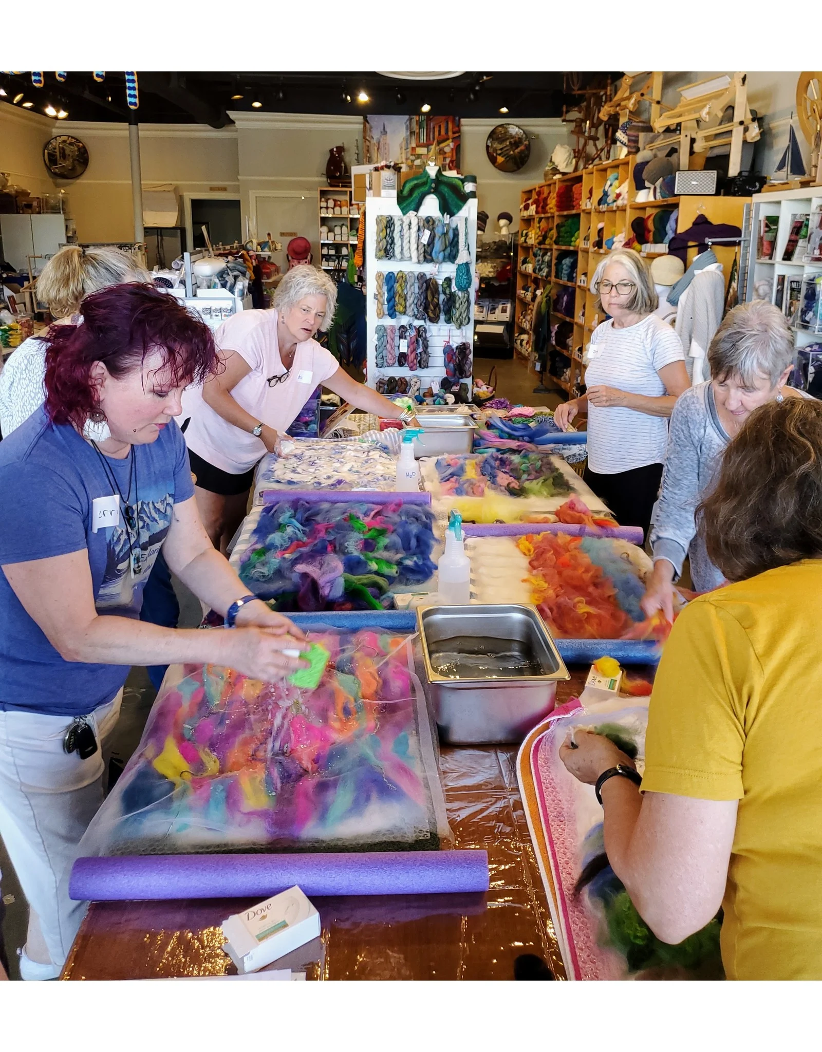 Students will learn how to make a basic art felt piece with wool fibers using wet felting techniques. Create a felted art piece that is a landscape, a seascape, or beautiful colors in an abstract design. Most finished pieces are about 8×10 to 12×16.